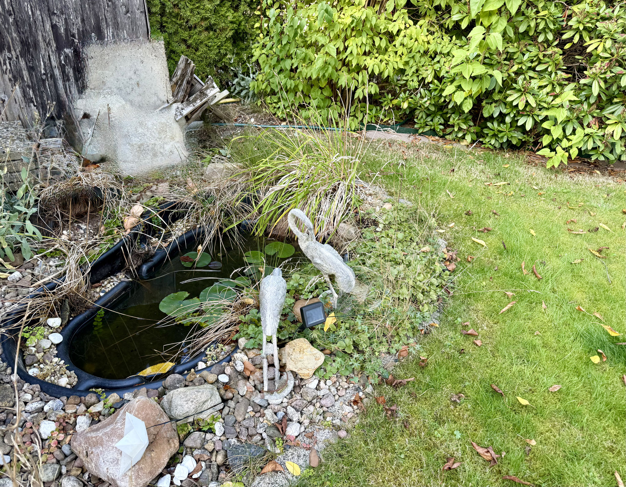 Das Grundstück von etwa 389 m² bietet ein Gartenstück mit gemütlicher Sitzecke und Zierteich. Neben der Tiefgarage gibt es eine weitere Garage direkt am Haus.