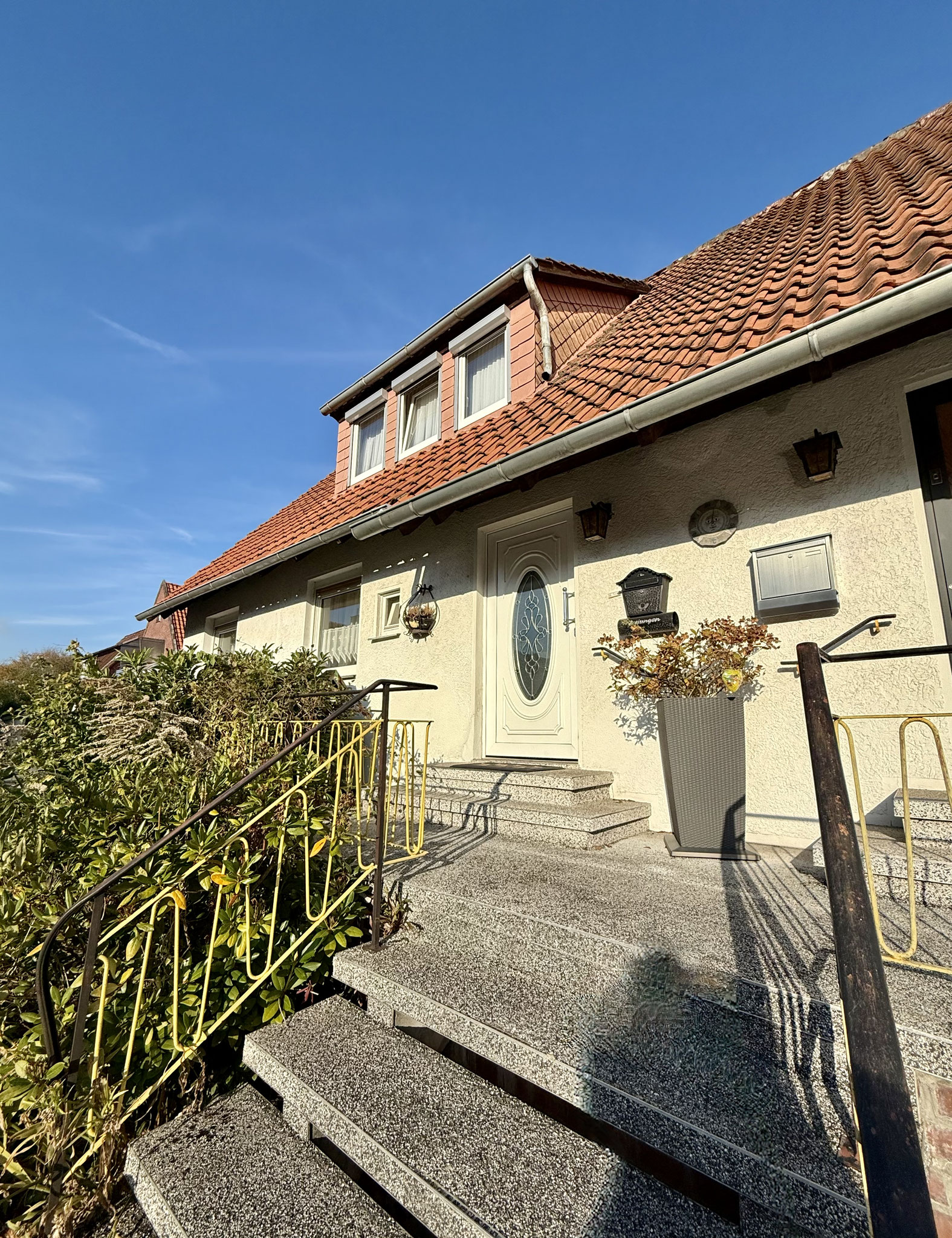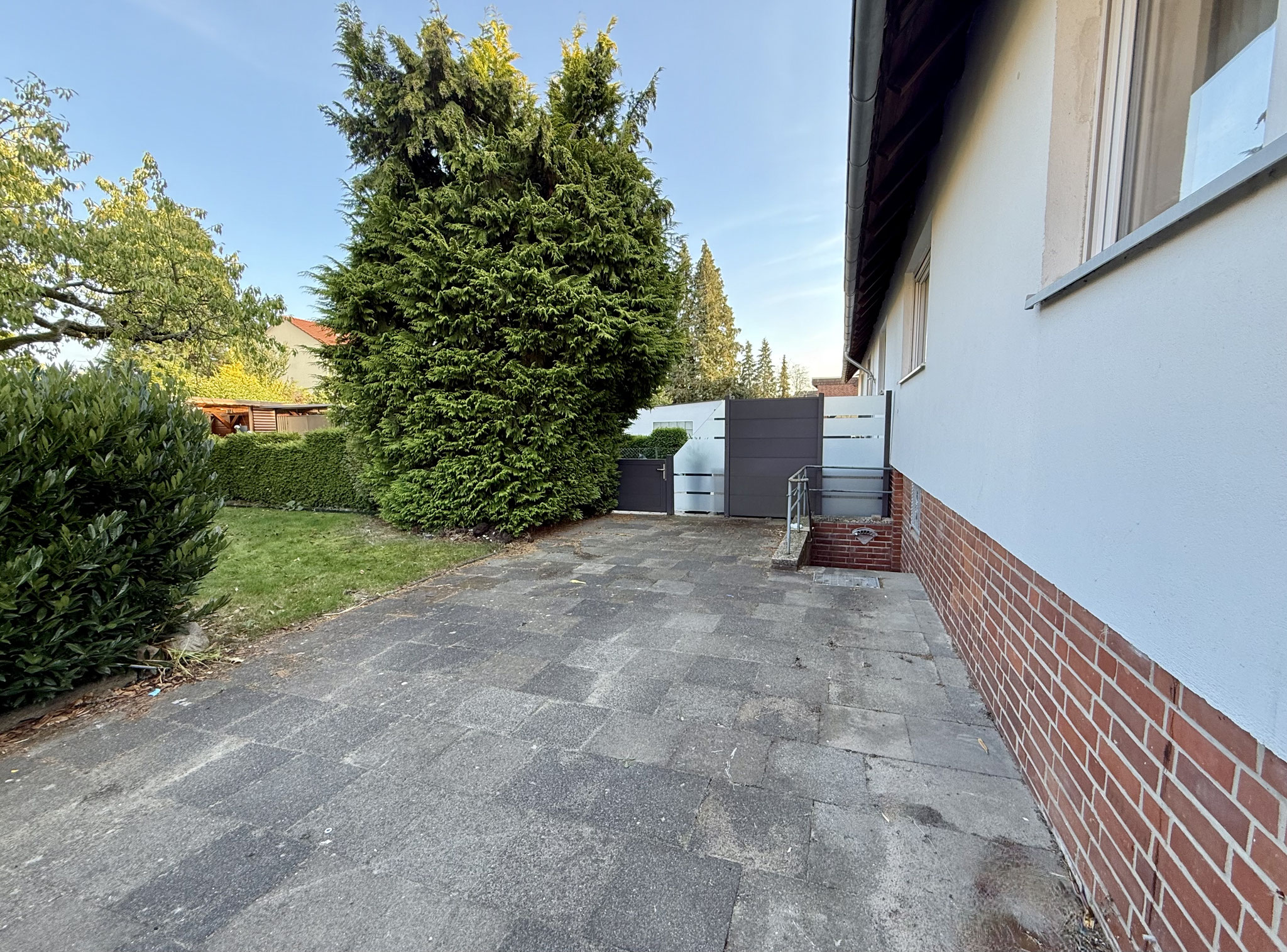 Das Gartenstück sowie die Terrasse erreicht man direkt über einen Zugang vom Keller. Hier befindet sich ausreichend Platz für eine geschützte Sitzecke mit Ausblick auf das bepflanzte Gartengrundstück und den Zierteich. Hier lassen sich entspannende Stunden im Grünen verbringen.